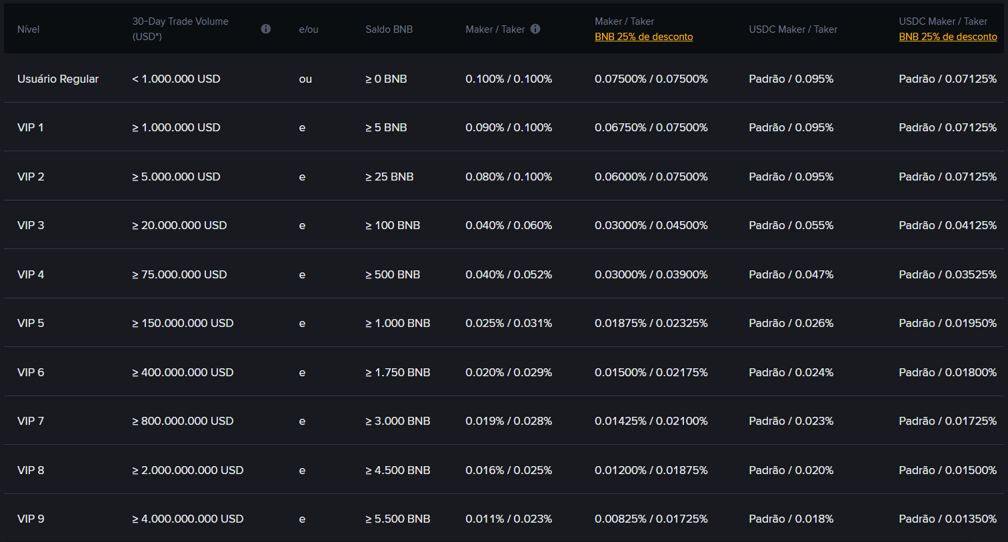 Quais as taxas da Binance?